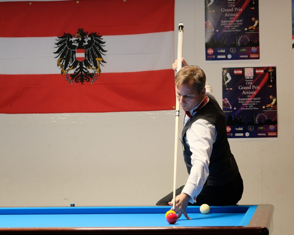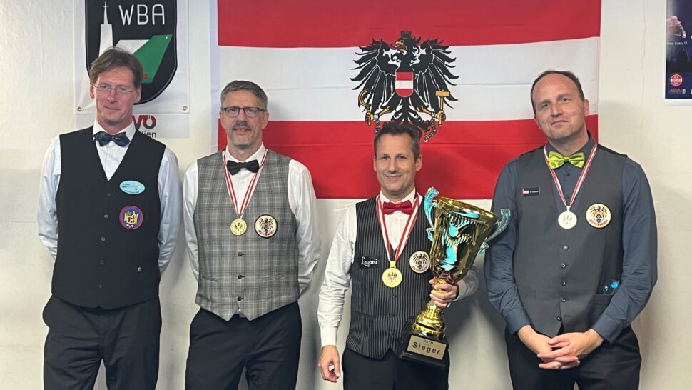 Der 51-jährige Wiener verteidigte an diesem Wochenende bei den 82. Österreichischen Staatsmeisterschaften im Einband am Matchbillard seinen Titel erfolgreich und holte sich in seiner Lieblingsdisziplin die bereits 22. Goldmedaille.